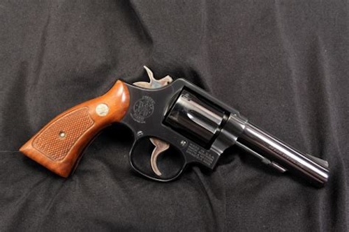 I was therefore very interested when my local dealer got his hands on two Smith & Wesson .38 Special revolvers. One was a 4″ pencil-barrel Model 10-5, like this one but in better condition: